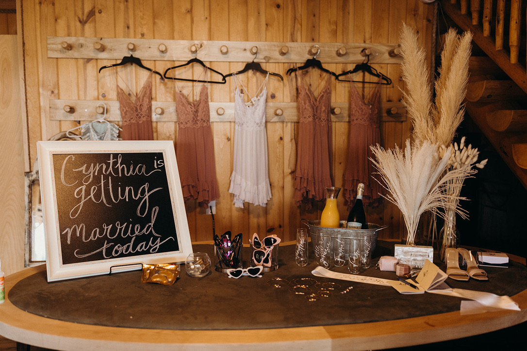 Alaskan Shotgun Weddings for June thru October wedding couples may take us up on a complimentary night’s stay on the night of their wedding in the Wolves Den. These weddings can be for larger weddings of 150 headcount or less. They are mainly held outside in the event tent, except for the 3 suites to get ready in. Wedding parties and families may hang out in the main common area of the lodge prior to the wedding but with the wedding ceremony and reception, most guests attending will probably be outside near the firepit or river, in the tent, at the pallet bar, or chillin’ on the deck. More than 150 guests a $500 fee will apply. Kitchen access (for warming). Walk in Fridge & Freezer access.