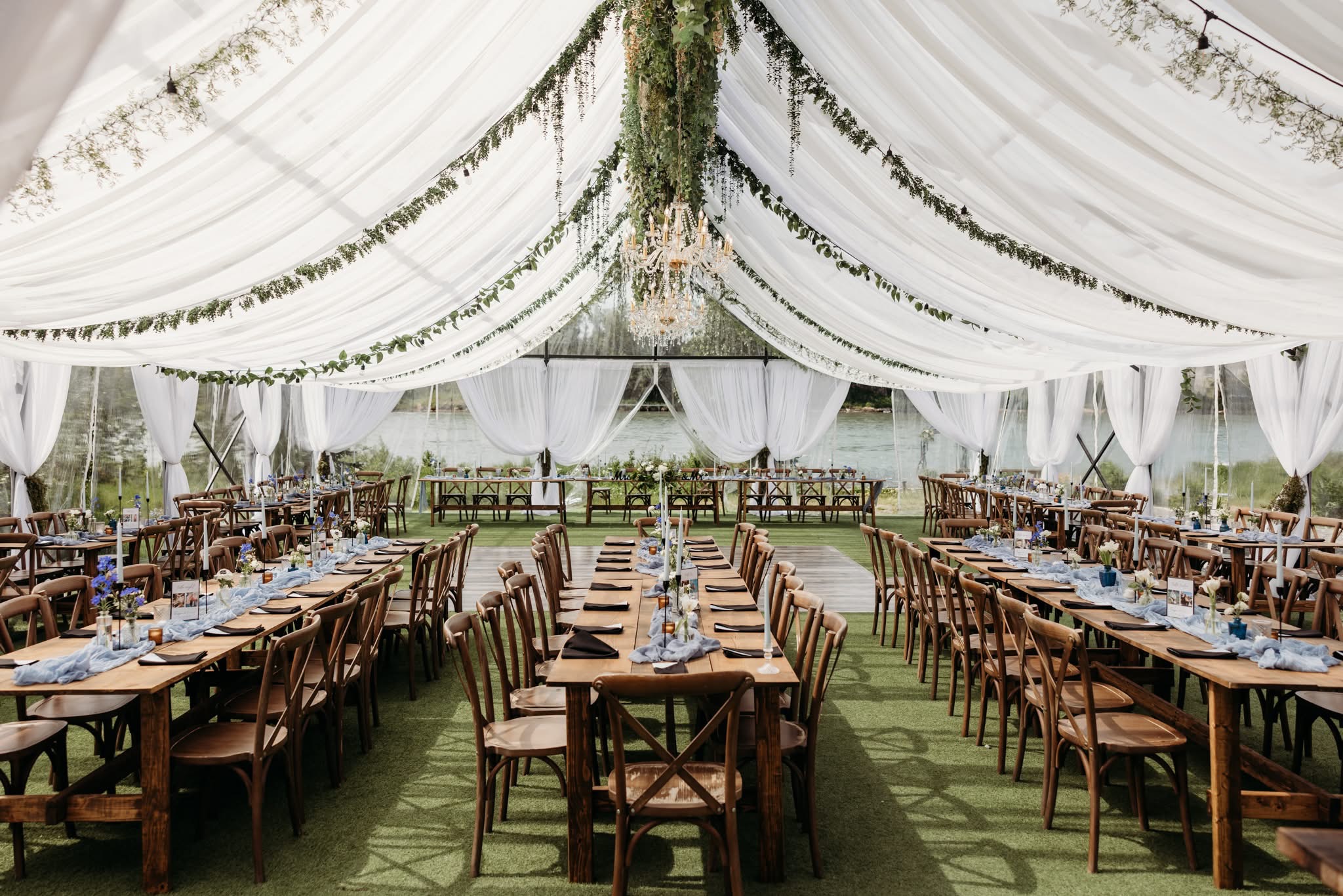 Whether you’re planning a designer dream wedding or a down-to-earth Alaskan celebration, Cusack’s On The Kenai gives you more for your money—no question. Our wedding packages are packed with value: private riverfront access, a stunning clear tent, lodging for 25+, ceremony arbors, and access to our Free Wedding Decor Room. Even on our prime fishing season dates, you’d be hard-pressed to find a better deal. No one offers more in one beautiful, punch-packed bundle. The truth is, even our highest price is a good deal.